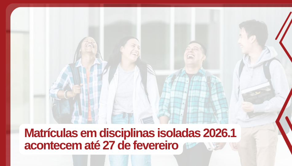 O Programa de Mestrado Nacional Profissional em Ensino de Física (MPEF), da UFSC Blumenau, informa que estão abertas, de 16 a 27 de fevereiro de 2026, as inscrições para matrícula em disciplina isolada.De acordo com o Regimento Interno do Mestrado Profissional em Ensino de Física (MPEF), poderá ser concedida matrícula em disciplinas isoladas, com a anuência do professor da disciplina, a interessados que tenham ou não concluído o curso de graduação, desde que respeitados os prazos de matrículas. Estes discentes terão direito aos atestados de frequência e aproveitamento, que podem ser utilizados para solicitação de validação de créditos posteriormente.